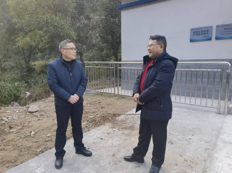 调研组首站来到金安区毛坦厂镇某基准站点预警设备安装现场,实地查看安装进展,仔细听取现场人员关于设备安装中的难点问题汇报。李建厅强调,预警站点建设是提升区域防震减灾能力的关键举措,要进一步加快设备安装调试进度,确保早日建成投用,尽快形成“全域覆盖、精准响应”的地震预警能力,为群众生命财产安全筑牢第一道防线。