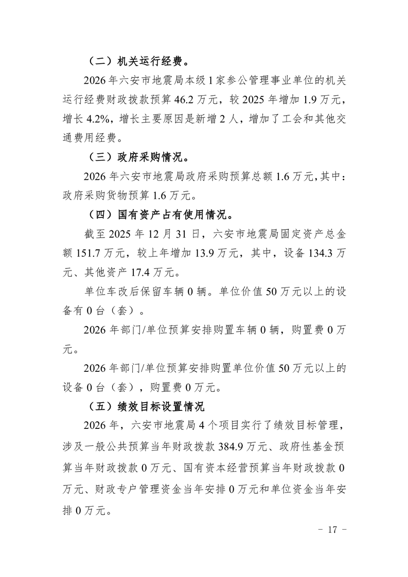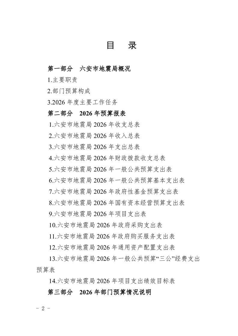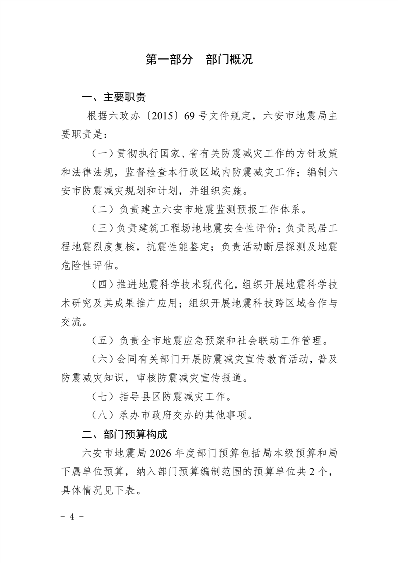 六安市地震局2026年部门预算公开