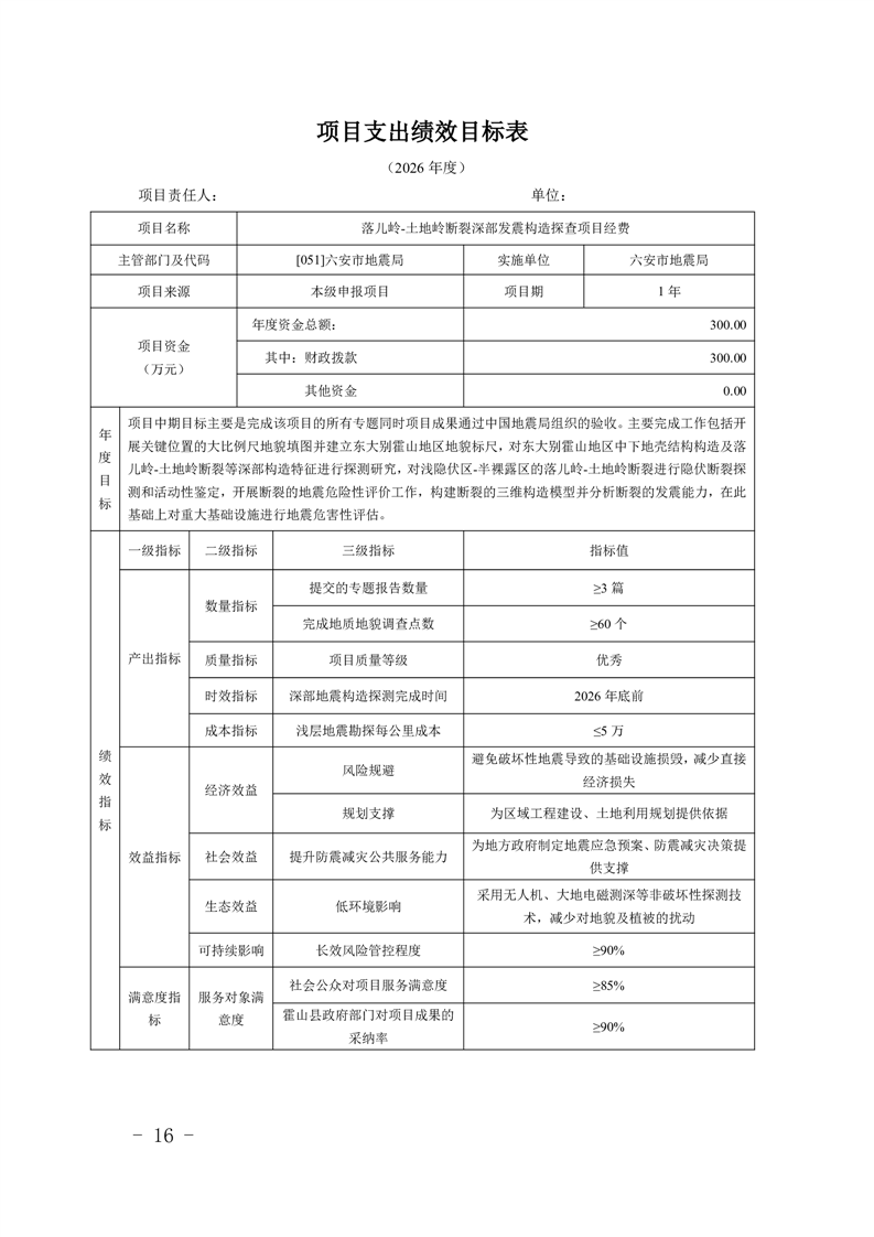 14、六安市地震局2026年项目支出绩效目标表.pdf标签: