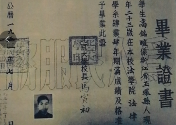 1949年9月,由于浙江大学法学院被迫停办,浙江大学法学院院长李浩培将高铭暄推荐到北京大学继续学习。图为1951年7月高铭暄从北京大学法学院法律学系毕业的证书。